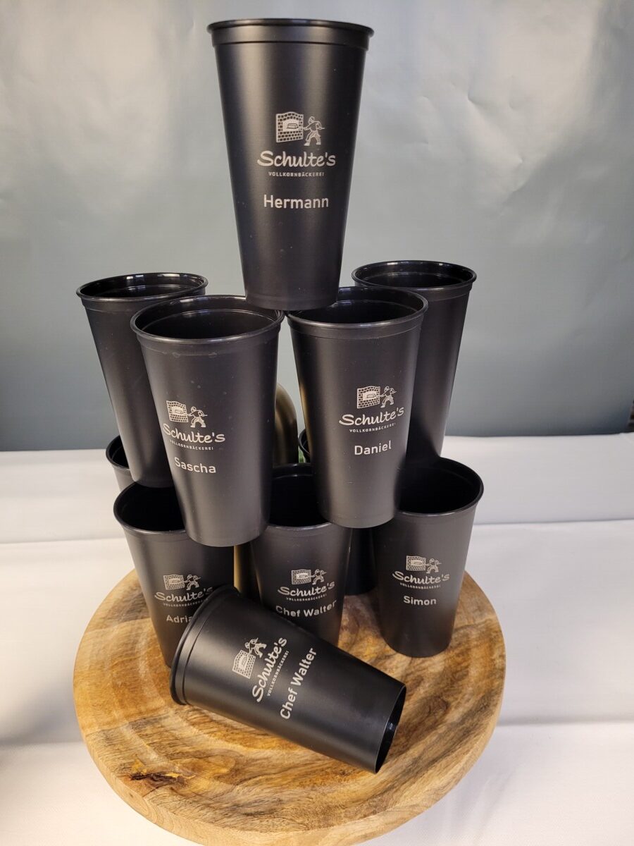 Eine präzise Lasergravur macht aus einfachen Gegenständen echte Hingucker. Ob für Werbezwecke, als Geschenk oder für den persönlichen Gebrauch. Mit modernster Lasertechnik veredeln wir bei uns im Hause eine große Vielfalt an Artikeln: von Kugelschreibern, Pokalen, Medaillen und Schlüsselanhängern über Trinkflaschen, Geschenkanhänger, Schmuck und Spielzeug bis hin zu Dekorationsartikeln, Messergriffen, Bilderrahmen, Handyhüllen, Schildern, Verpackungen, Schuhen, Büchern und vielem mehr.